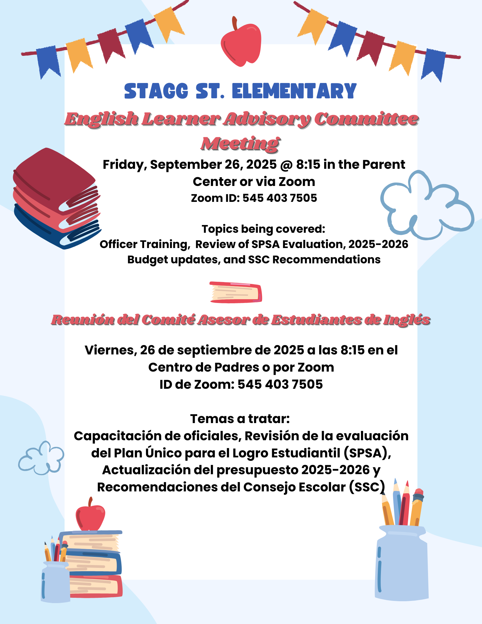 English Learner Advisory Committee Meeting Attached Files 2025-2026_ELAC Member_Officer Training_Agenda copy.docx Sept. 26_2025-2026_ELAC_1st Meeting Agenda _ bilingual copy.docx